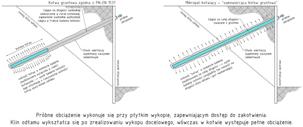 Wyłącznie nazwą 🙂 W obydwu przypadkach mówimy o konstrukcjach oporowych, gdzie zawsze występuje zjawisko klina odłamu, więc sama zmiana nazwy elementu kotwiącego nic nie zmieni na lepsze. Obydwa te rodzaje tzw. „kotew” nie spełniają wymagań norm projektowych i wykonawczych dotyczących konstrukcji oporowych.